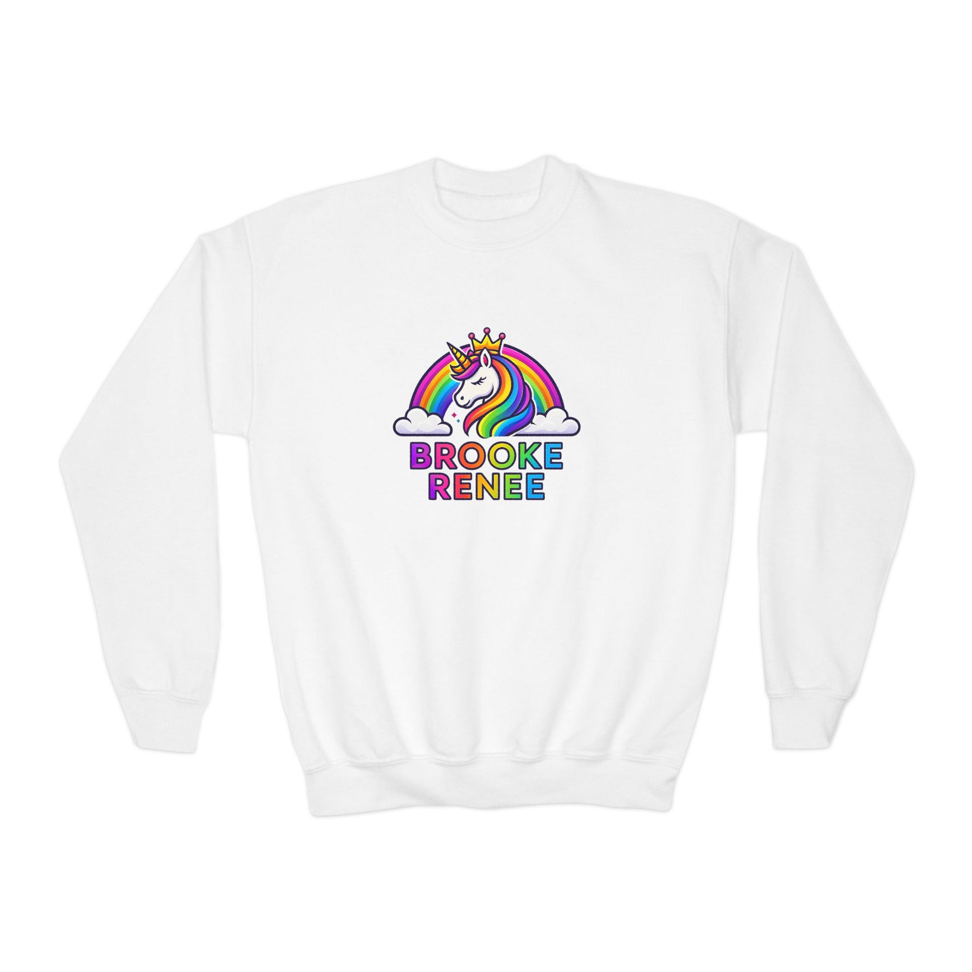 Rainbow Unicorn Name Design Youth Sweatshirt | Personalized Brooke Renee