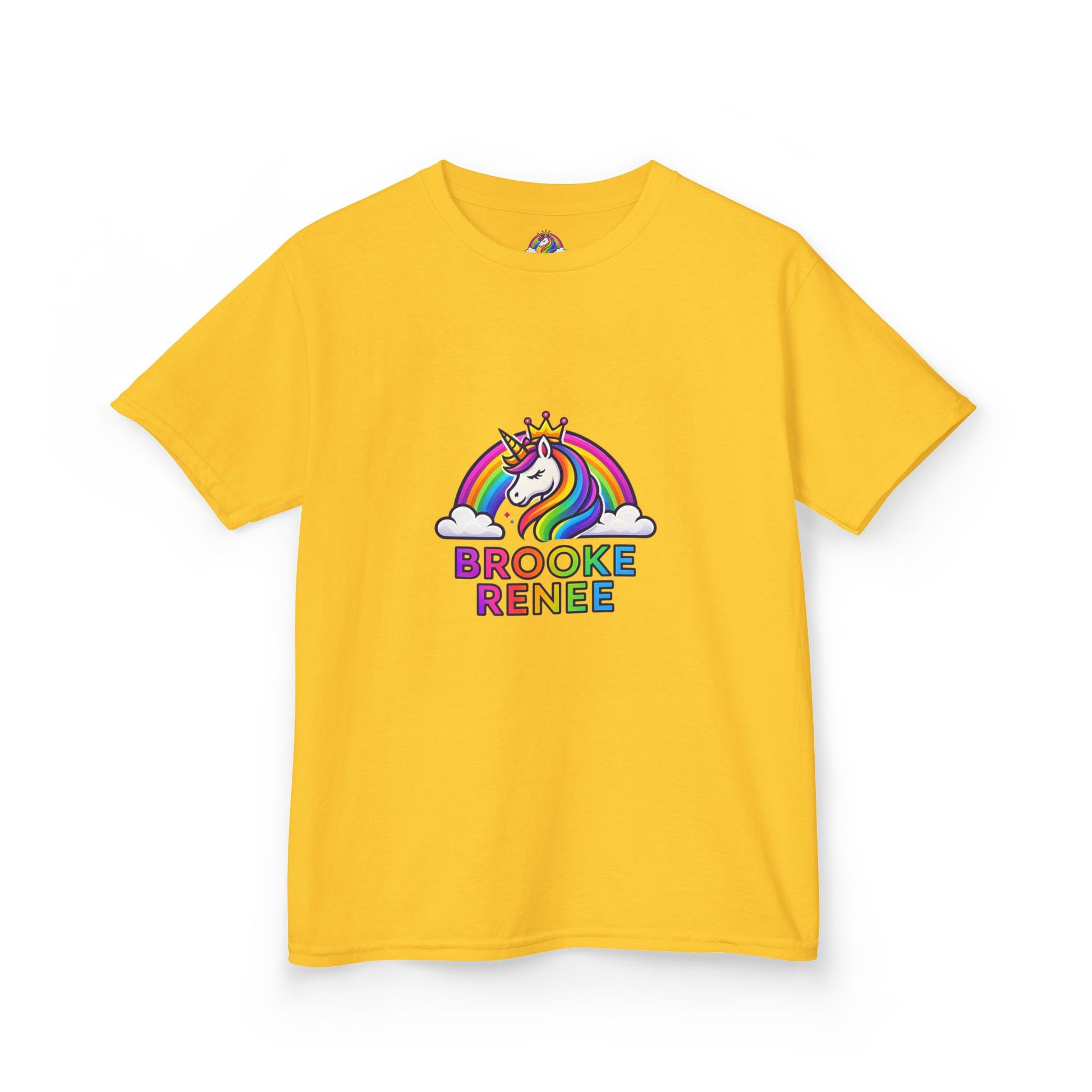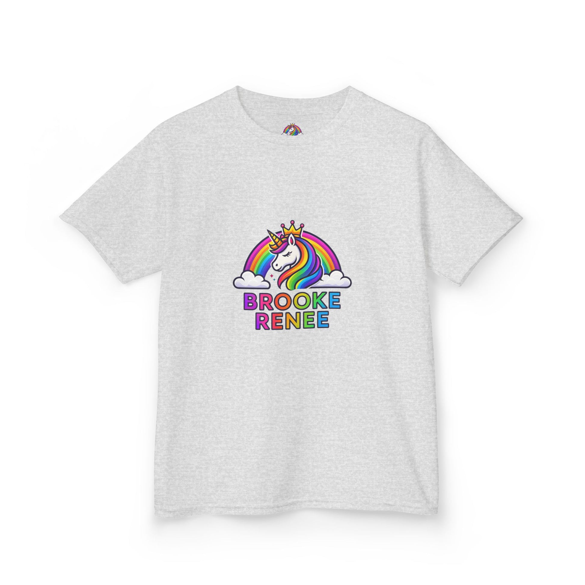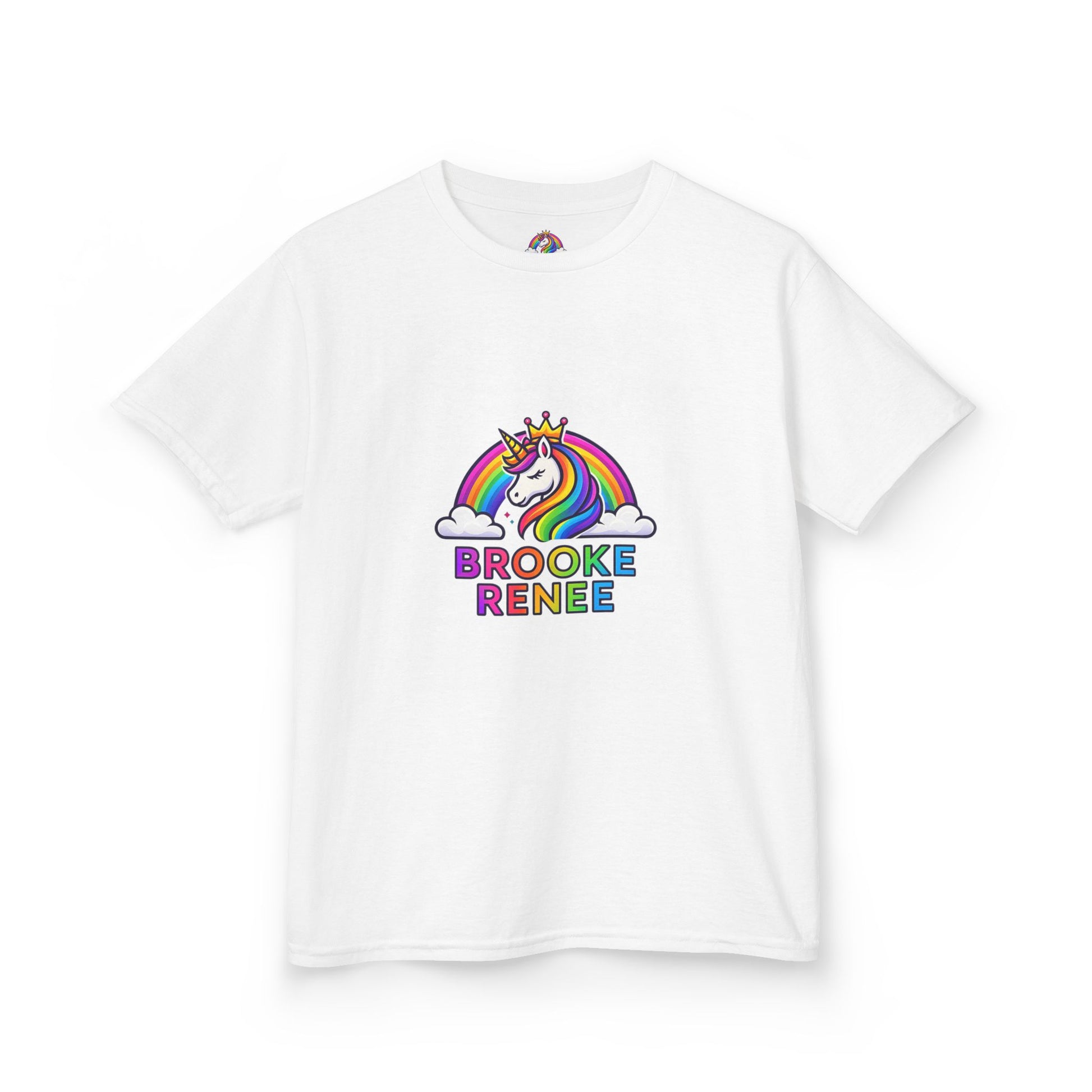 Rainbow Unicorn with Crown Kids Tee | Personalized Name Brooke Renee